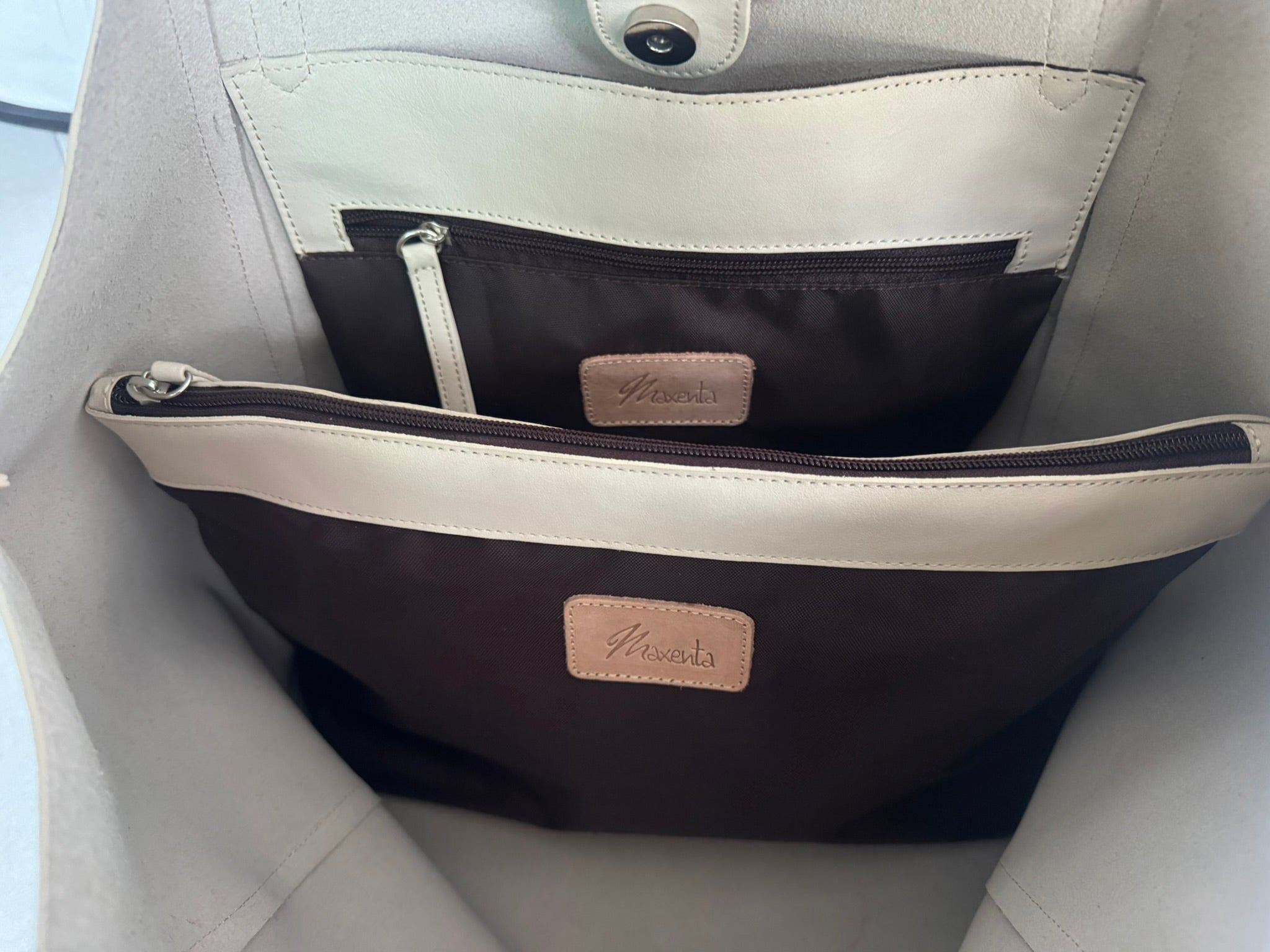 Diseñado para la mujer que busca equilibrio entre estilo, funcionalidad y sofisticación, este tote de cuero Maxenta es el compañero perfecto para la rutina diaria, la oficina o una escapada de fin de semana.