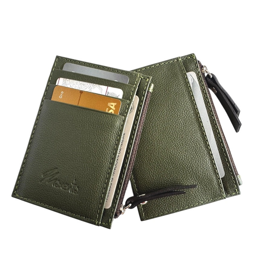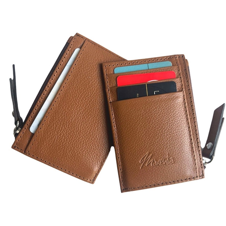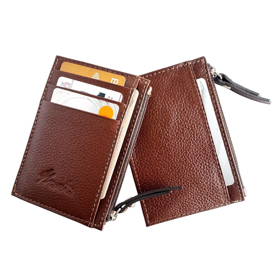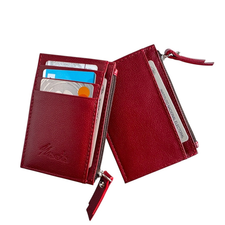 Tarjetero de cuero con cierre para monedas, puedes guardar más de 5 Tarjetas. Ideal para bolsas pequeñas y de viaje.